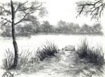 2016Natuurlandschap aan de rand van een meer in houtskool
